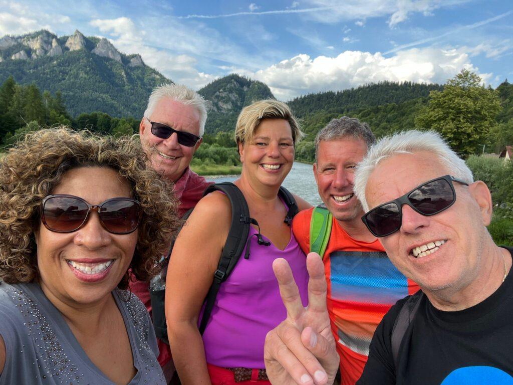Uiteraard zijn het lange dagen. Want naast het gidsen moet ook het ontbijt en avondeten gemaakt worden. Wanneer na een heerlijke dag onze gasten ontspannen in de sauna treffen wij de voorbereidingen voor de volgende dag. Wat zijn deze dagen het waard. Intenste vriendschap over en weer. Dit voelt zo bijzonder. Na Zakopane volgt een fietstocht langs de rivier en tussen de rotsen van de Pieniny naar Sczcawnica. We genieten van de vlotten, kajakken en rafters op de rivier, maar vooral van elkaar. We hebben fietsen voor onze gasten gehuurd. Een deel fietst op een elektrische en de stoere man doet het net als ons vandaag op de mountainbike. Nu is het redelijk vlak, maar af en toe toch echt wel een pittige klim. Dus naast het ontspannen genieten van de omgeving moet er af en toe toch ook echt wel spierkracht getoond worden. Dit levert natuurlijk weer hilarische momenten en plagerijen op. We zullen niet alles delen want……wat in Lapsze happens……stay in Lapsze ha ha ha.